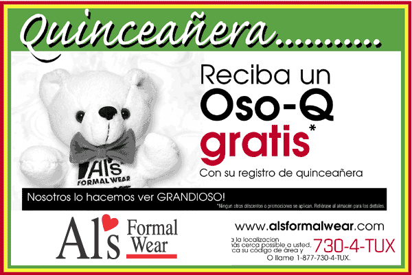 and receive a Free Q-bear when you reserve your Quinceañera tuxedos.